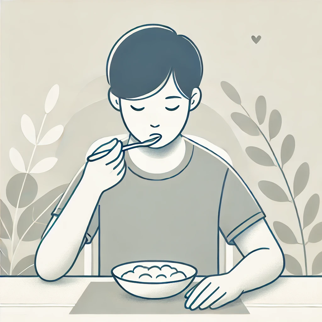 급하게 먹는 습관은 위에 부담을 주고 소화불량을 유발합니다. 한 입에 최소 20~30회 이상 씹는 습관을 들이세요.